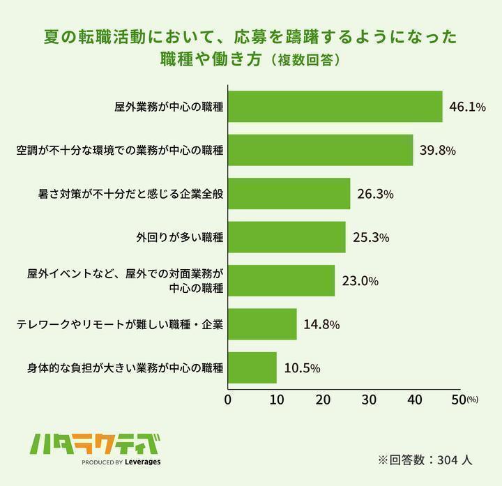 応募を躊躇する対象として「屋外業務」が最多でしたが、注目すべきは「暑さ対策が不十分だと感じる企業(26.3%)」が約3割にのぼった点です。