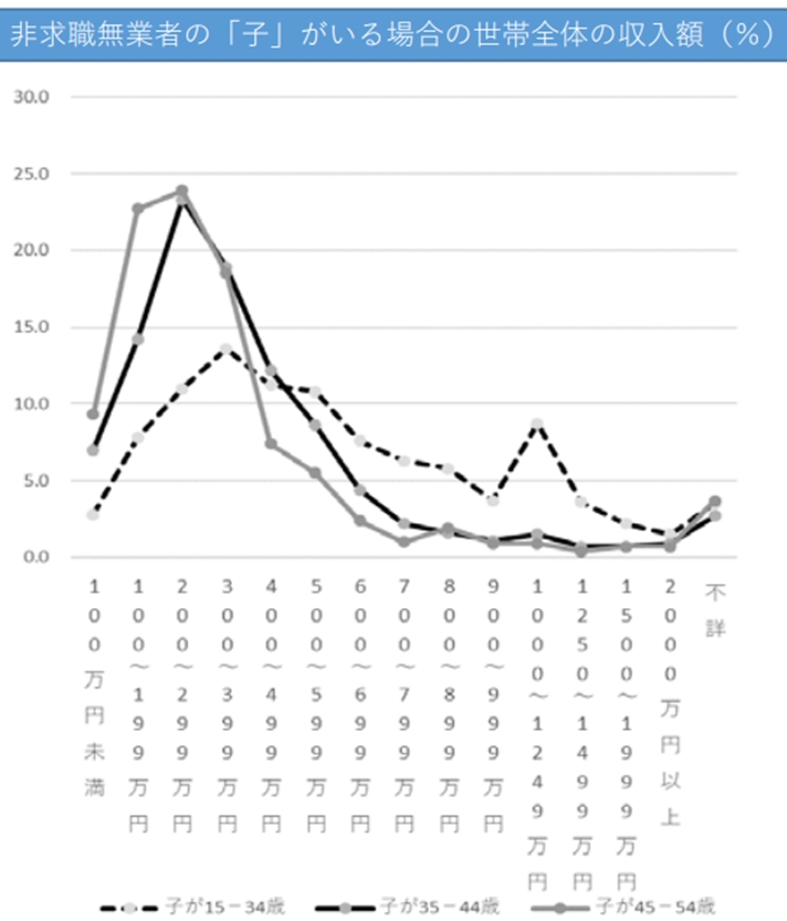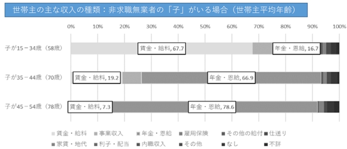 独立行政法人労働政策研究・研修機構の「『就職氷河期世代』の全体像を把握する-平成29年版『就業構造基本調査』の二次分析から-」では、無職の高齢化による世帯収入の影響について調査を行いました。