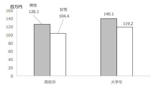 一方で、フリーター男性(大学・大学院卒)の生涯年収は、約1億4010万となり、正社員より約1億円少なくなっています。