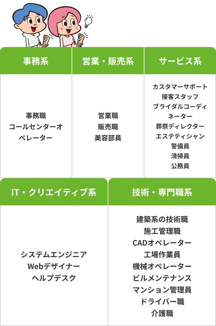 - フリーターからなれる職業は、「ITエンジニア」「営業職」「販売職」「公務員」などたくさん!
