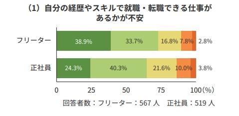 フリーターと正社員に就職・転職活動を始める際の不安について質問したところ、経歴に不安があると回答した人は7割を超えています。